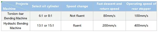 В контексте прессов для гибки, обсуждение обычно вращается вокруг трех различных скоростей: скорости опускания, рабочей скорости и скорости возврата. В случае NC (числового управления) прессов для гибки, они оснащены цилиндрами с соотношением 6:1 или 8:1, тогда как CNC (компьютерное числовое управление) прессы для гибки используют цилиндры с соотношением 13:1 или 15:1, что приводит к тому, что CNC пресс для гибки работает на более высокой скорости, чем его NC аналог. Во время движения ползуна вниз в NC прессе для гибки скорость составляет приблизительно 80мм/с, тогда как скорость движения заднего упора составляет около 100мм/с. В отличие от этого, CNC пресс для гибки может похвастаться скоростью опускания ползуна до 200мм/с и демонстрирует плавный переход при регулировке скорости. Кроме того, скорость его заднего упора может достигать до 400мм/с, что значительно повышает общую эффективность работы.